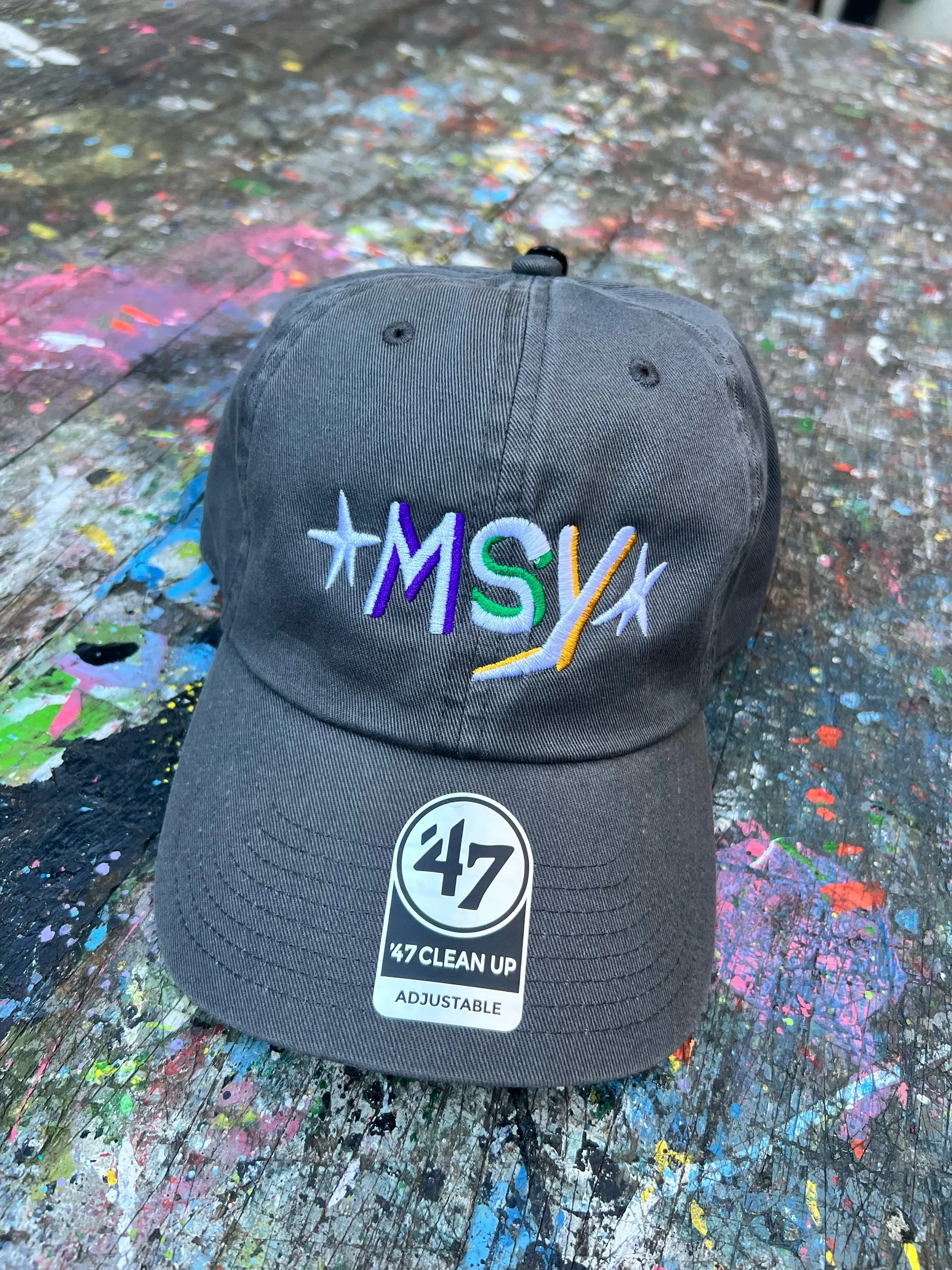 Embroidered locally on a 47 Brand dad cap that is adjustable so one size fits all! Classic colors to represent New Orleans year round at home or abroad!